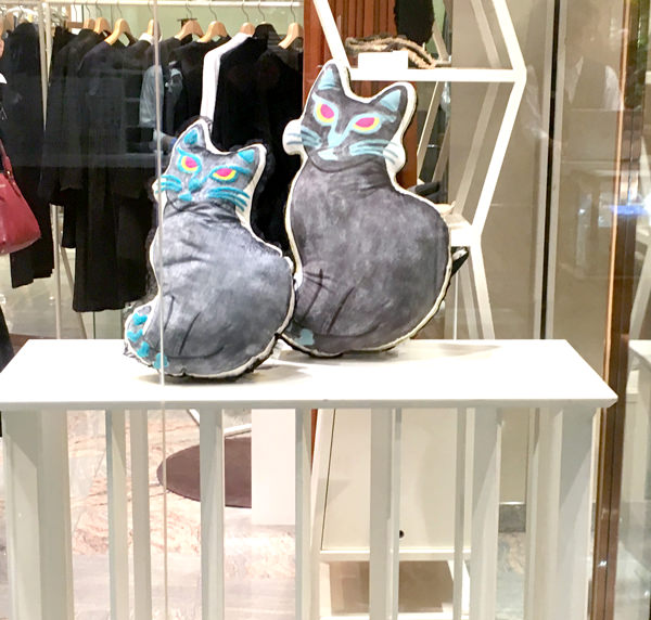 ショーウインドウのガラス越しに見る猫クッションは、とても優雅な小悪魔CAT☆彡