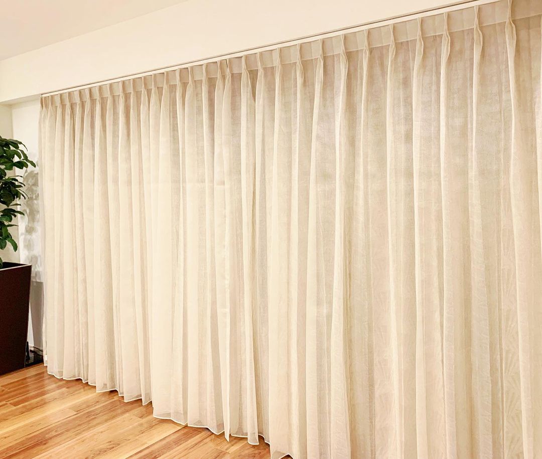 生地の特性を活かし、柄合わせ・レールとの隙間や床上、ミリ単位での高度な縫製技術でお仕立てしております。