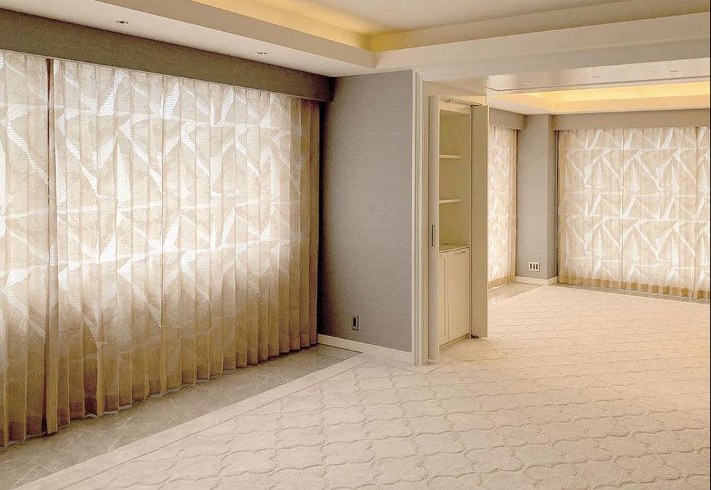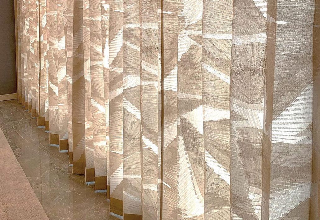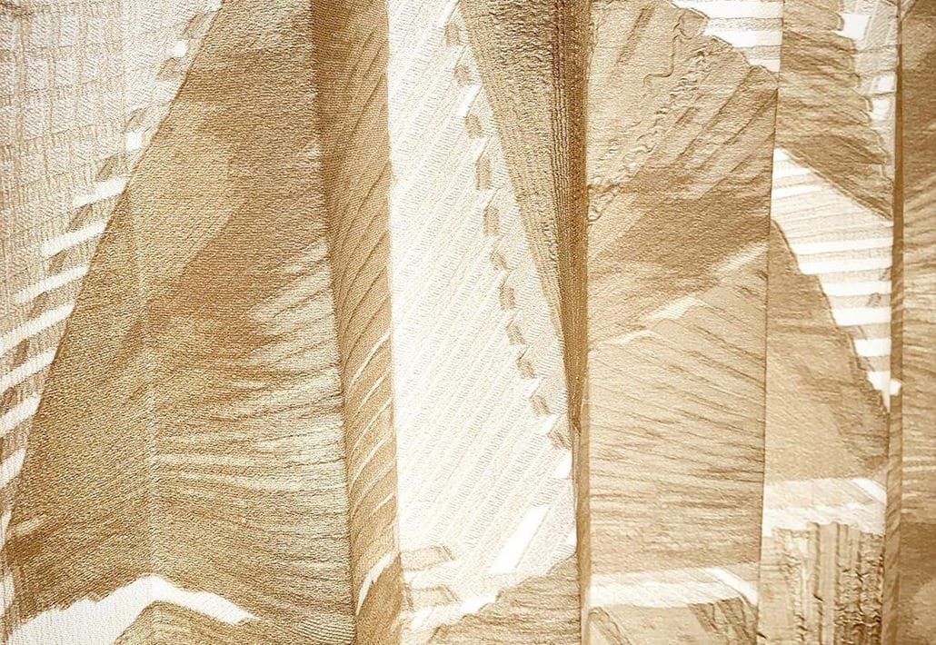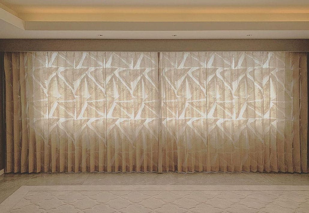 部屋側の「HAWAII」は植物をモチーフに、生地を部分的にシワ加工や透過性を用いた高い技術で美しさが表現されています。