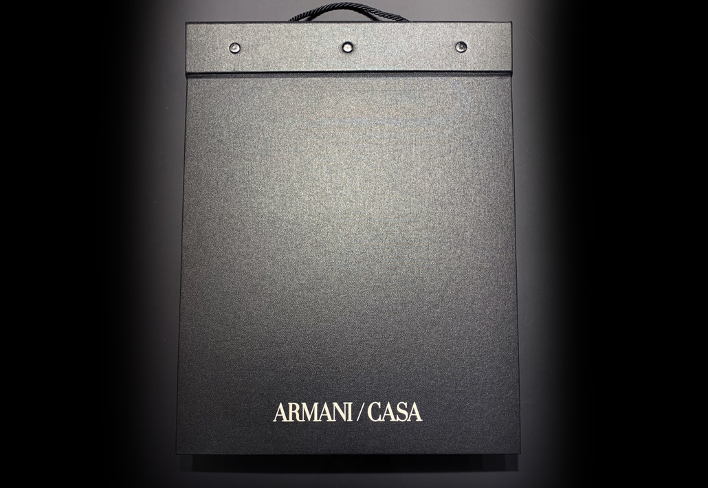 ARMANI/CASA アルマーニカーザの新作生地でファブリックボードをお納めしました。