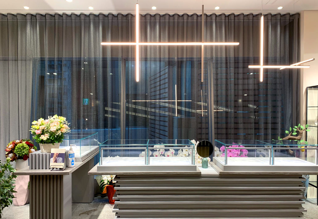 六本木ヒルズにオープンされたCADEAUX Jewelry(カドージュエリー)様にカーテンを納めさせていただきました