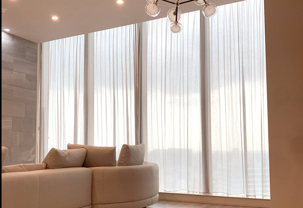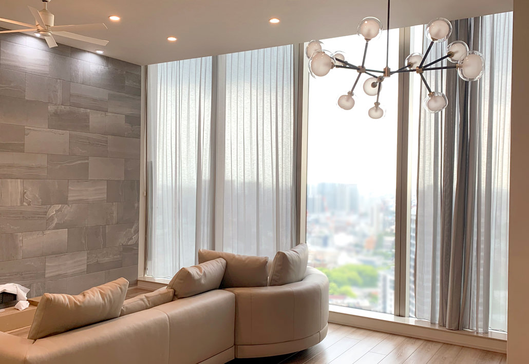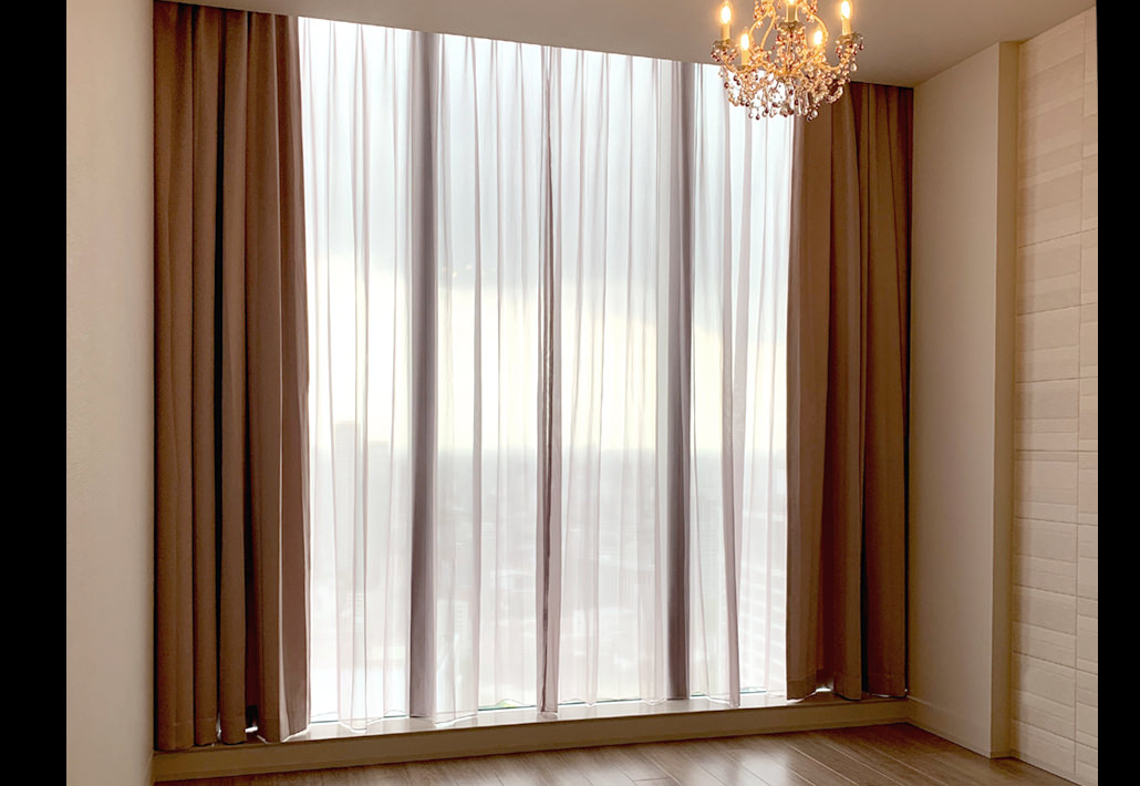 最上階から見渡す素晴らしい眺望を、さらに素敵に演出するために、カーテンをお納めいたしました。