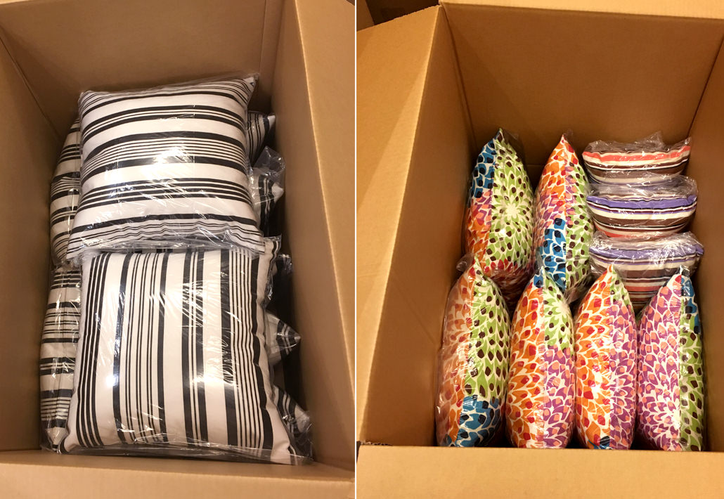 オーダークッションの場合、クッションカバーの中材にはポリエステルやスモールフェザーなどお選びいただけます。