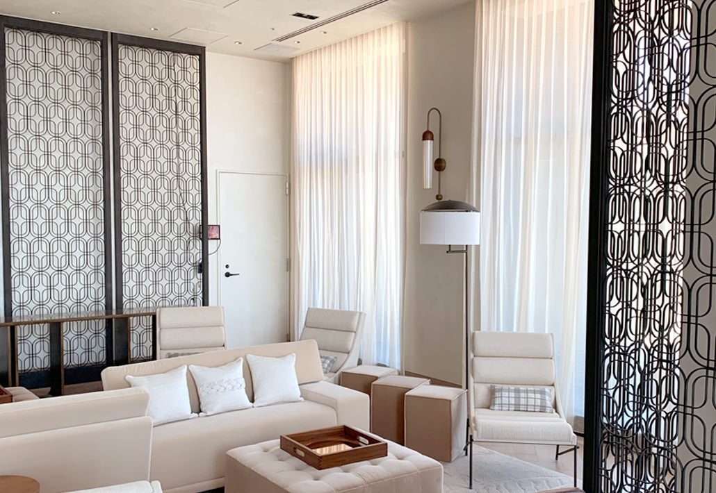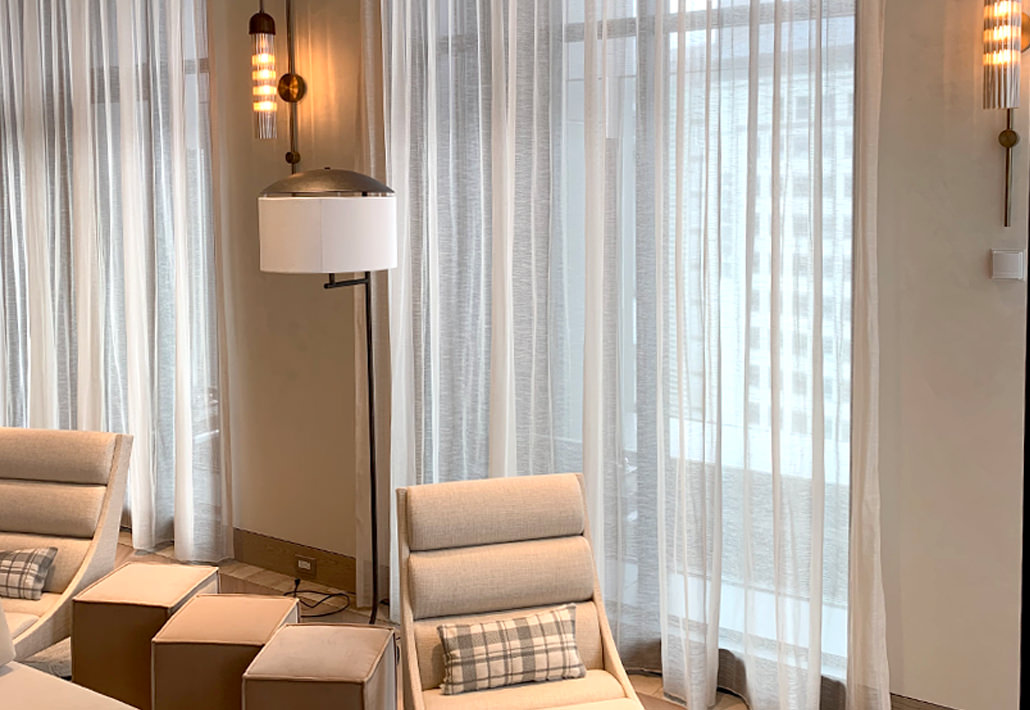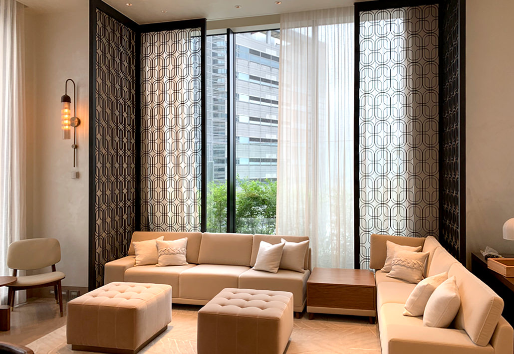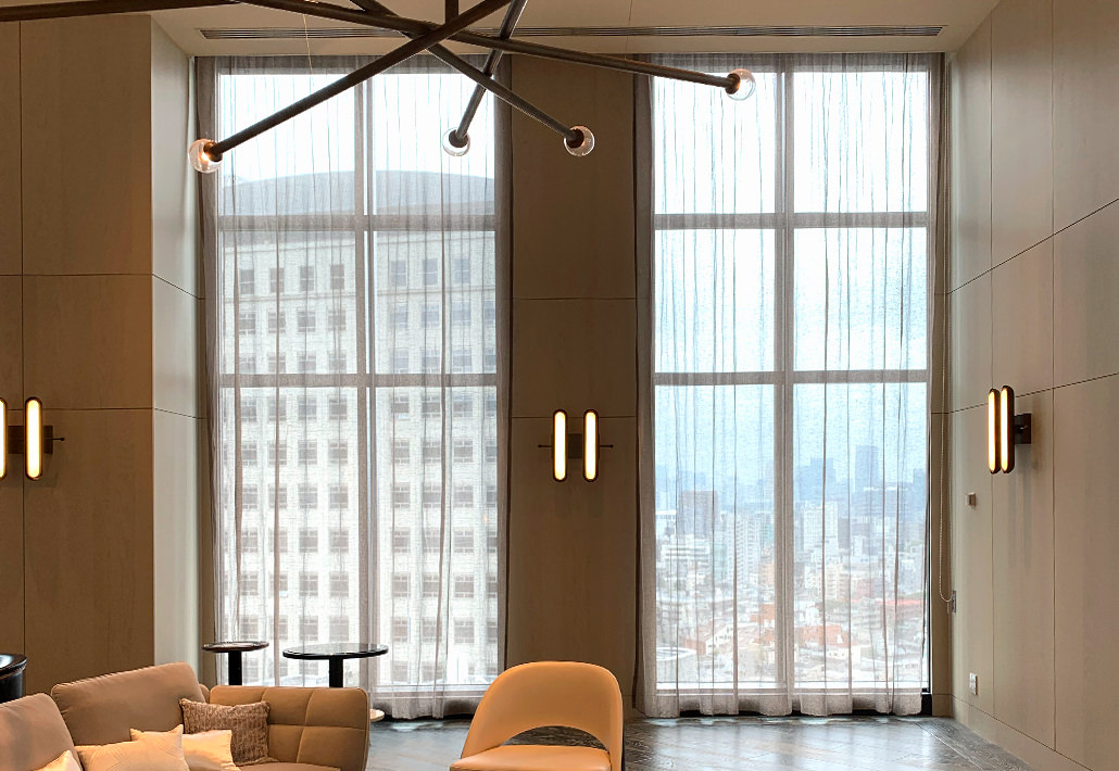 弊社は全フロア(客室・レストラン&バー・バンケット等)FF&Eの窓回り製品(大型電動スクリーン・カーテン・シェード)及びクッションを担当させていただきました。