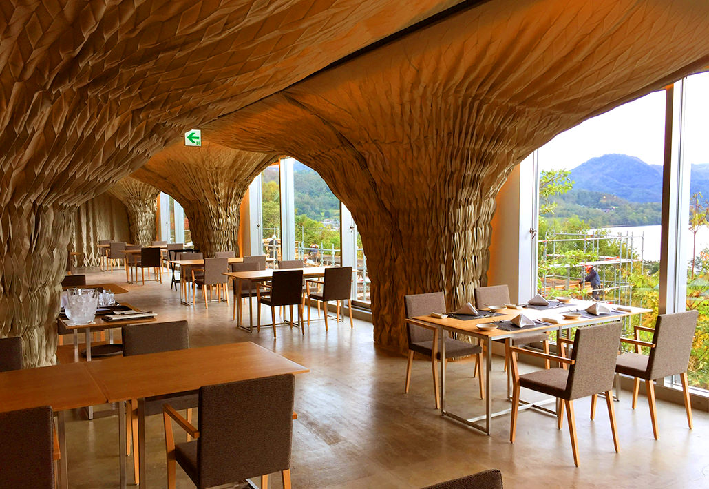 洞爺湖の豊かな自然から着想を得た特徴的な要素と、現代的な視点で表現された「和」が融合した空間がこの場所ならではの特別な体験を演出しています。