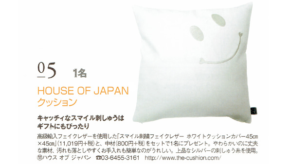 当店取扱いのスマイル刺繍フェイクレザー ホワイトクッションカバーが紹介されました。