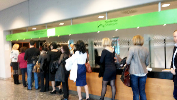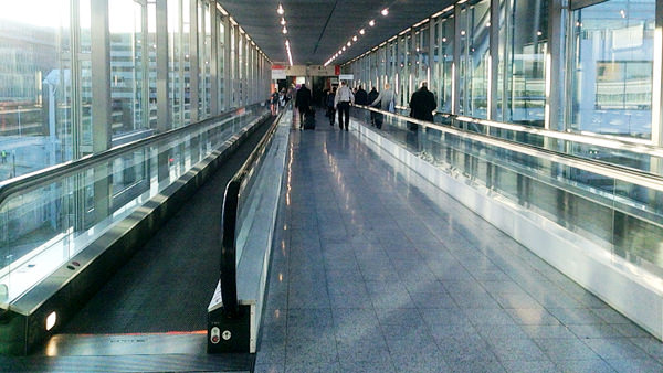 クロークでコートとマフラーを預けて、動く歩道でブース内へ、