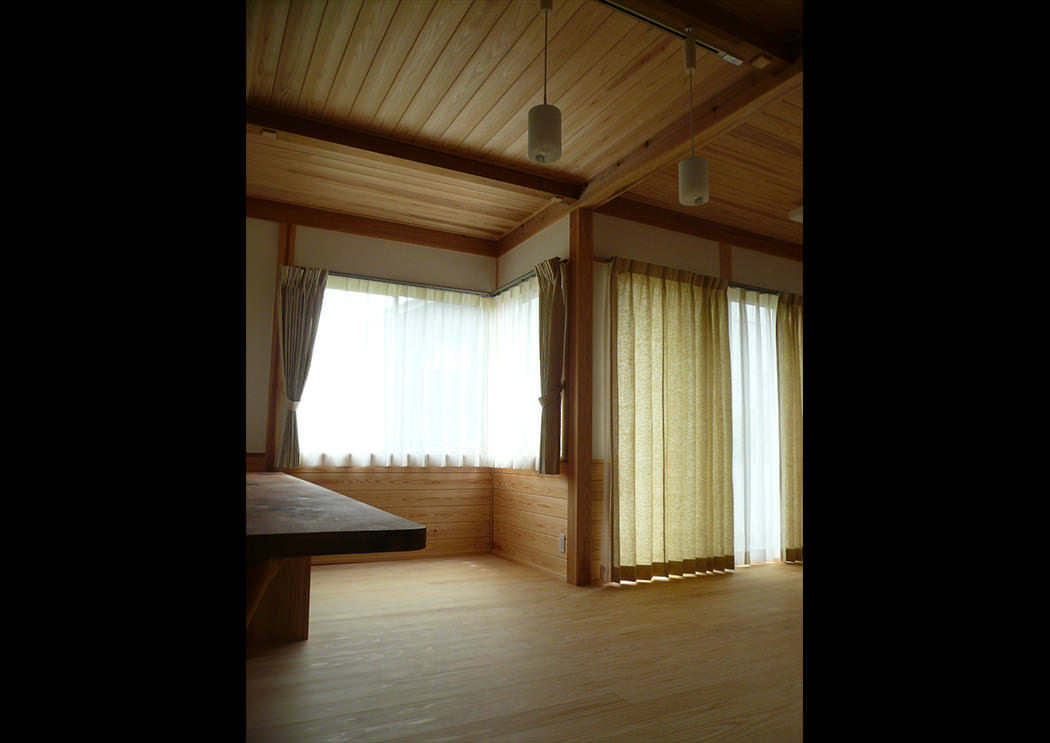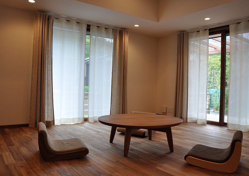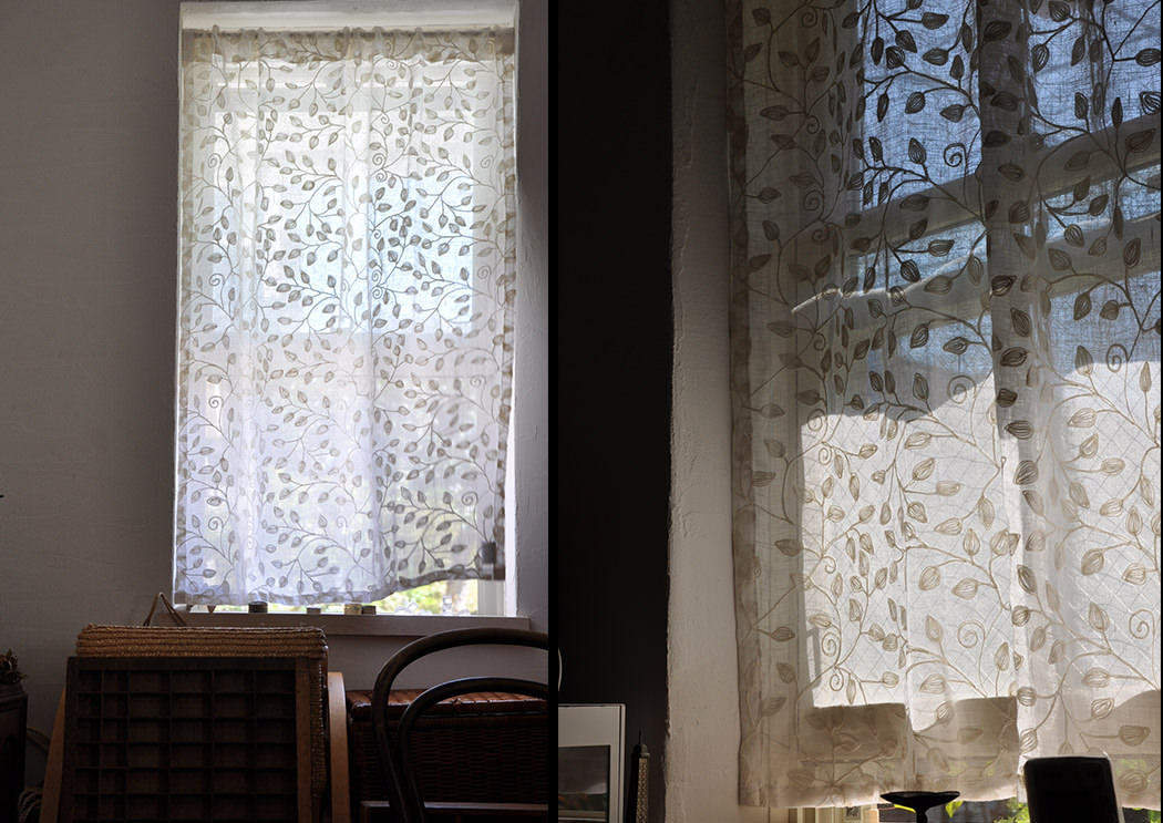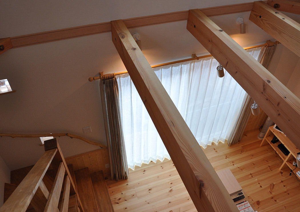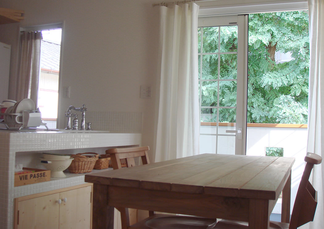 一般的な住宅は、化学加工材の壁や床材が多く仕様されていますが、窓にリネンカーテンを掛ければ、