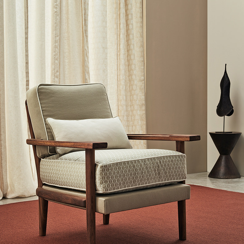 ロロ・ピアーナの生地には、感覚に対する独自の世界観があります。誘われるような柔らかさの椅子張り地、羽のように軽くたなびく薄手のシアーカーテン、特別に手触りのいい洗練されたブランケット、ウール、カシミヤで織られた潔くシンプルなカーペットやラグ。すべて快適さと心地良さに溢れる生活空間のために作られています。