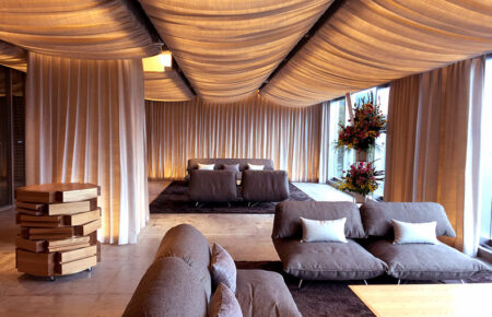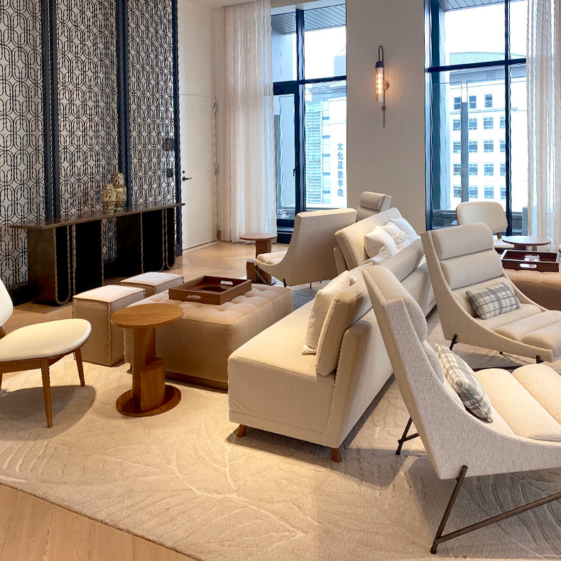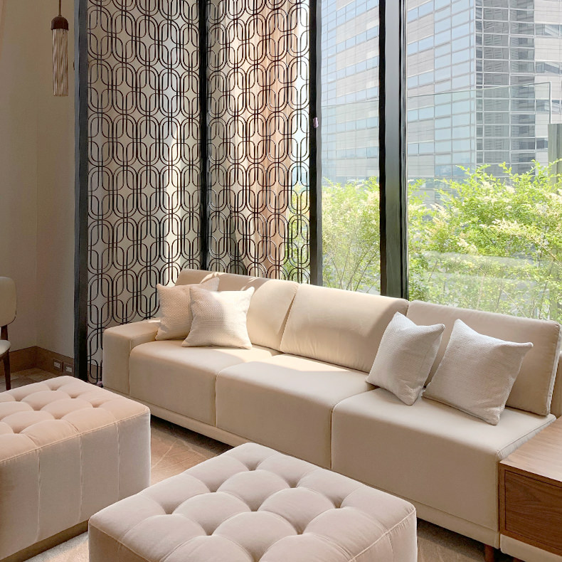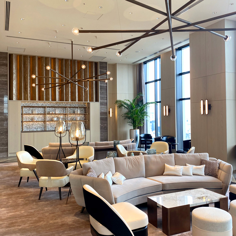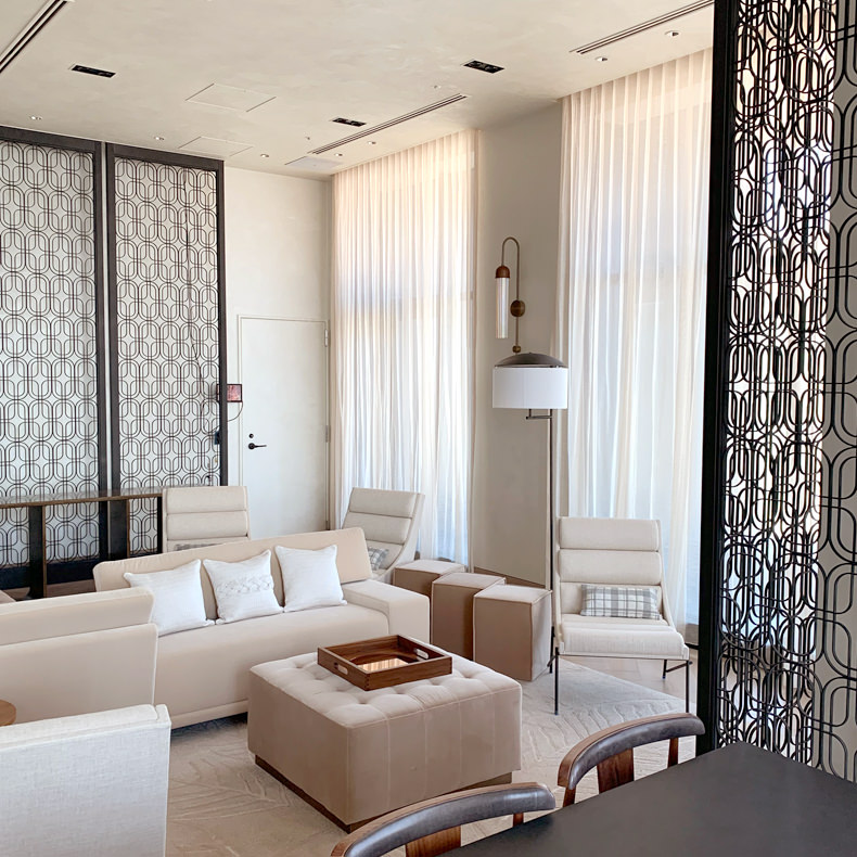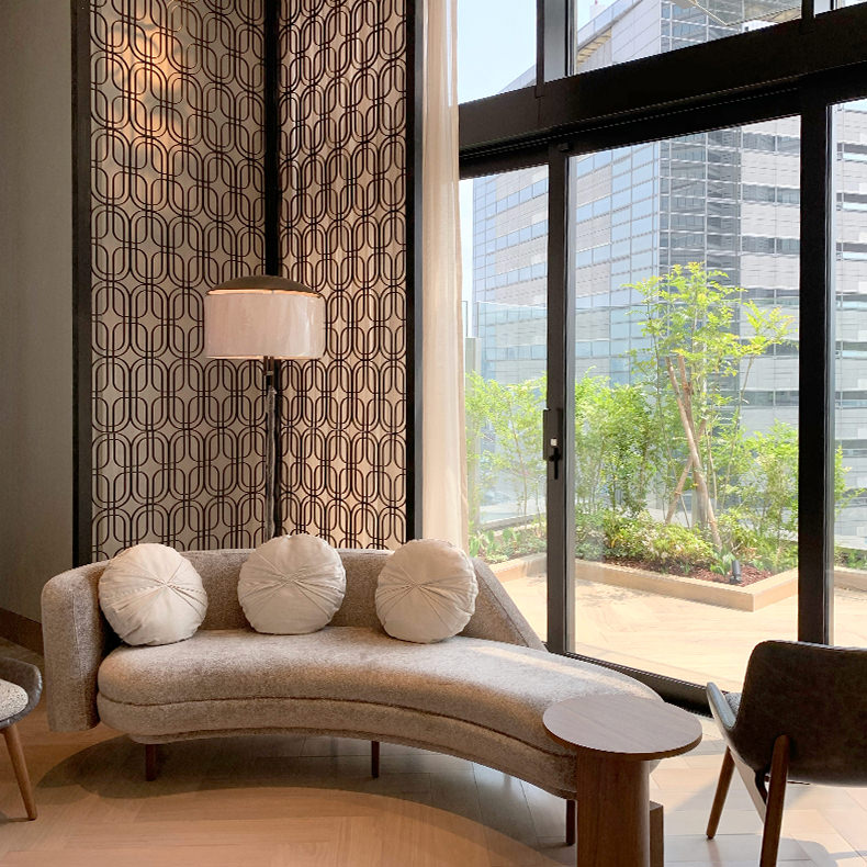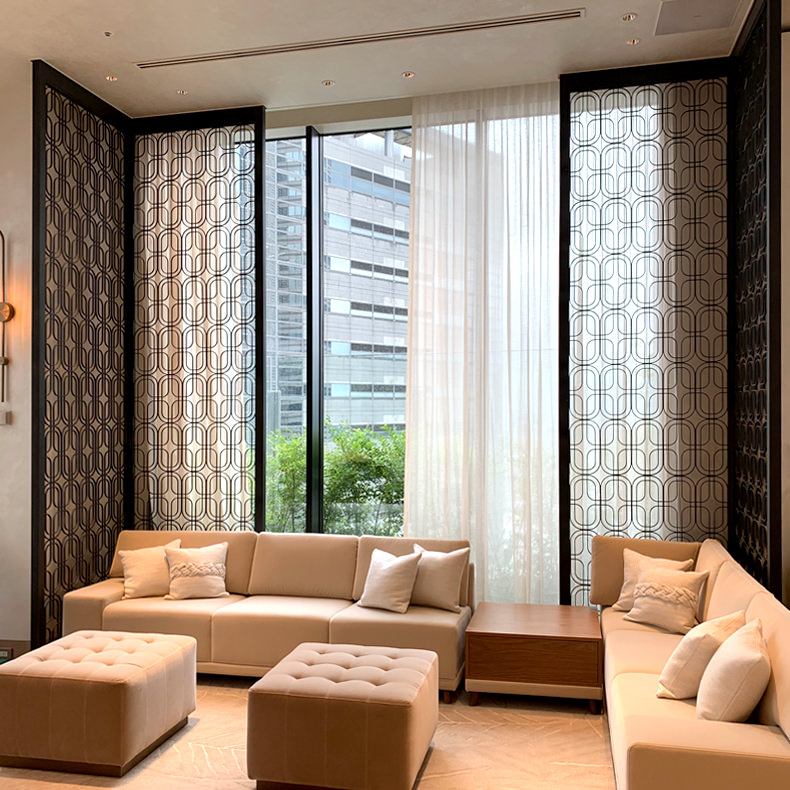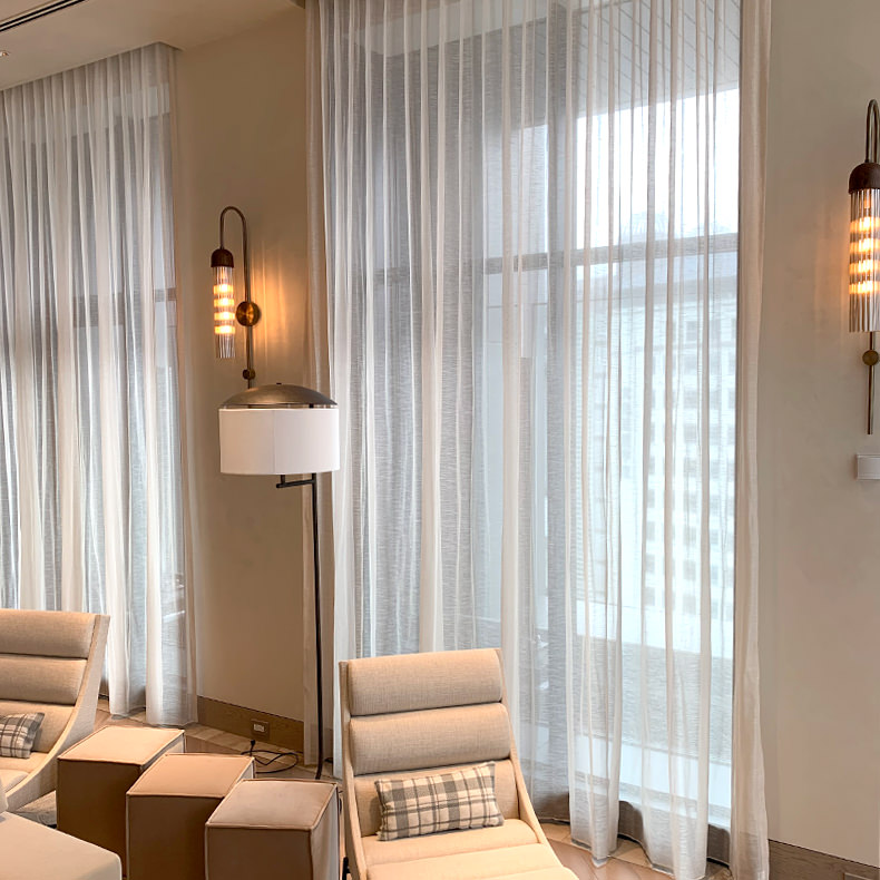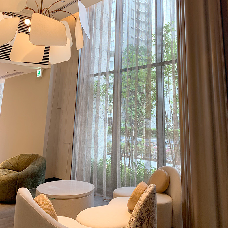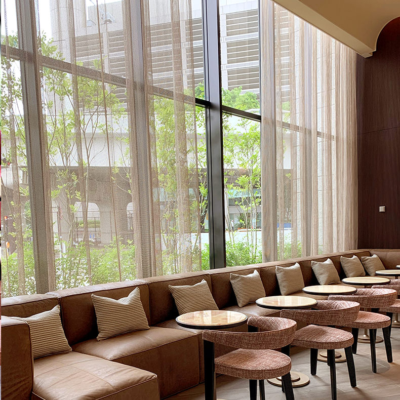 弊社は全フロア(客室・レストラン&バー・バンケット等)FF&Eの窓回り製品(大型電動スクリーン・カーテン・シェード)及びクッションを担当させていただきました。