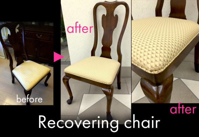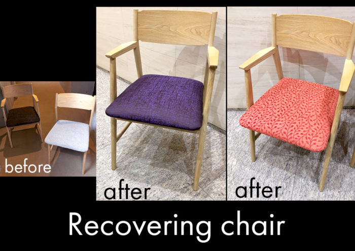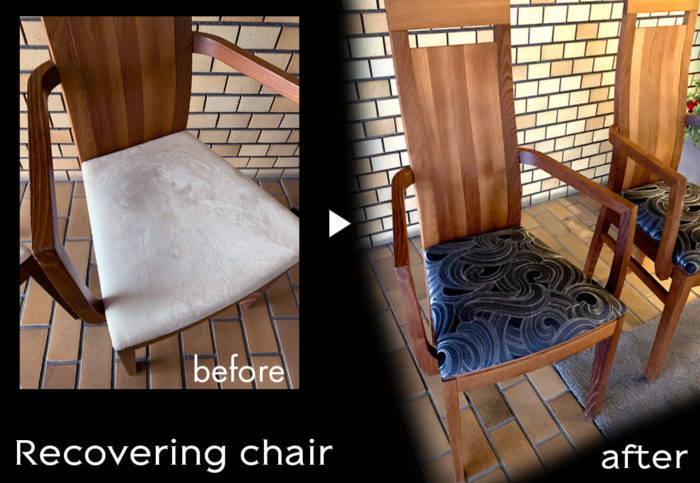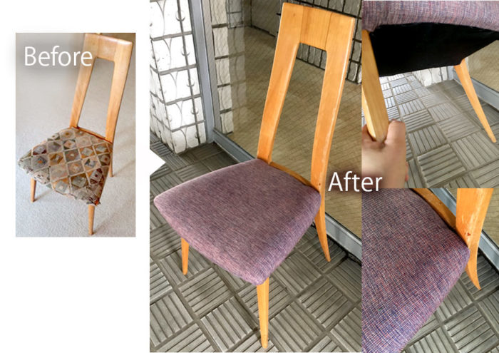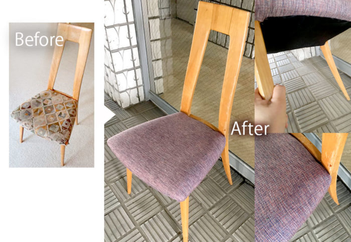- お好きな張り地を選んでいただき、椅子の張り替えをさせていただきました