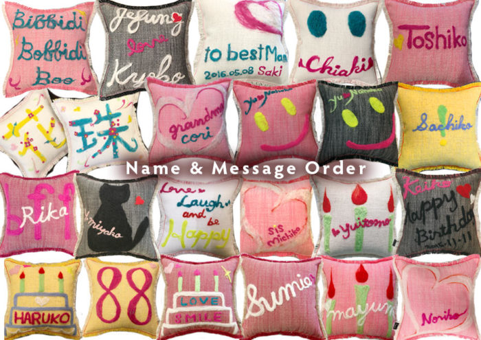 - メッセージクッションのオーダー製作例です。