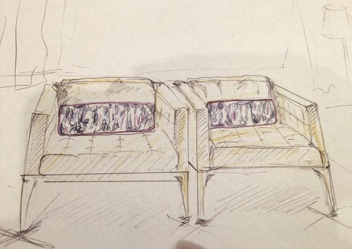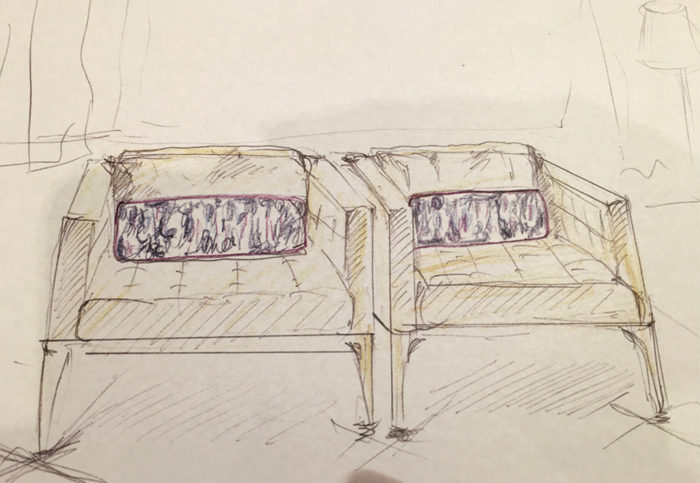 - ラフスケッチ例です。オーダーでクッションのコーディネイトも承っております