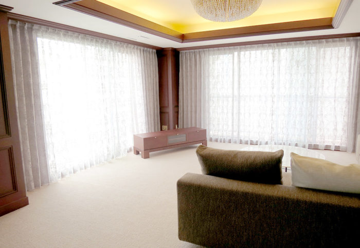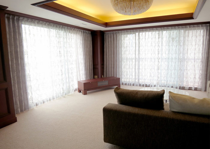 ホテル・施設・マンションパブリックエリア・美術セットなどの窓装飾(カーテン、ブラインド、大型電動スクリーン)やソフトファニシング(クッション、ベッドスロー、椅子張り)等のプランニング、モックアップ、製作、取付施工