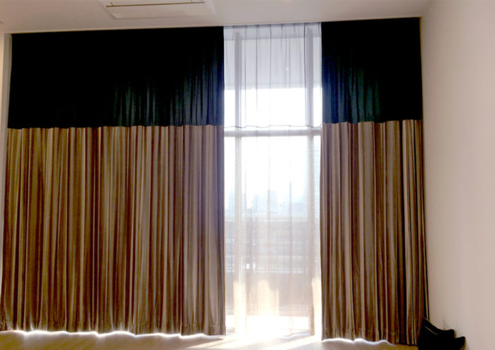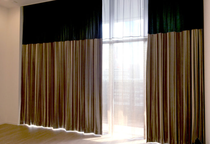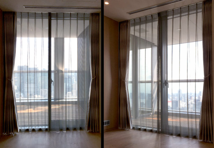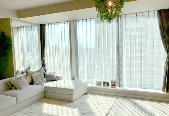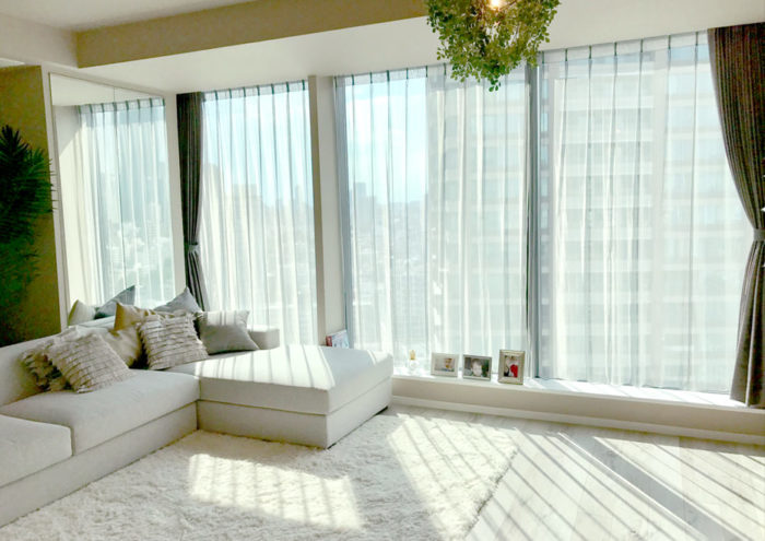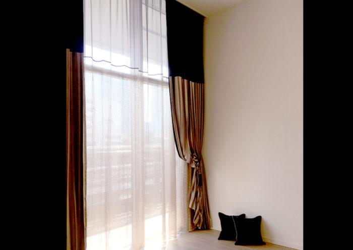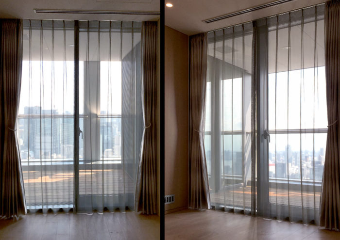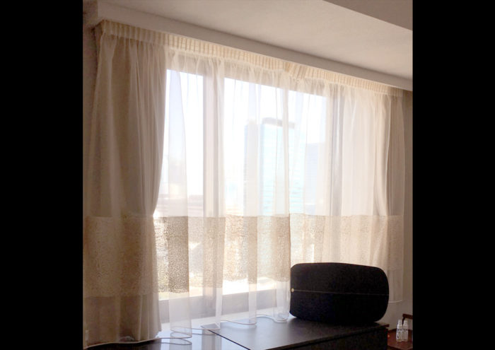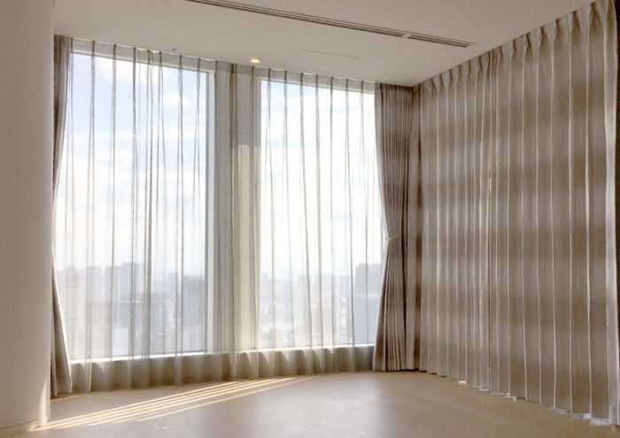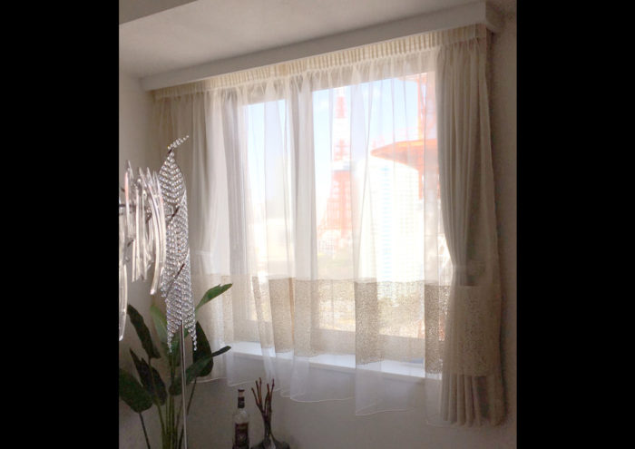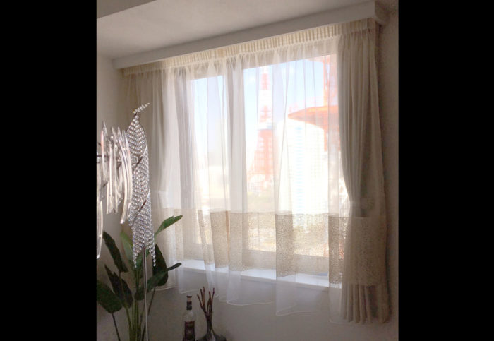 - タワーマンションにお住まいのお客様に遮熱のレースとドレープをオーダーで製作いたしました。