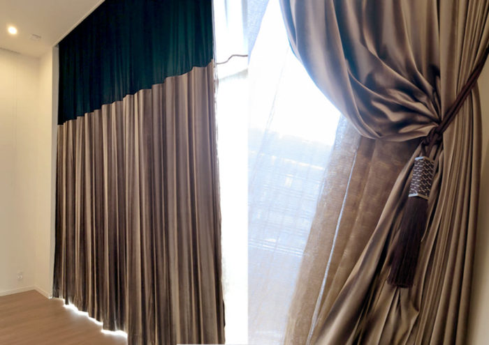 - お客様より「映画で見たワンシーンみたいなカーテンが欲しい」とのご依頼をいただき、オーダーカーテンを製作いたしました。