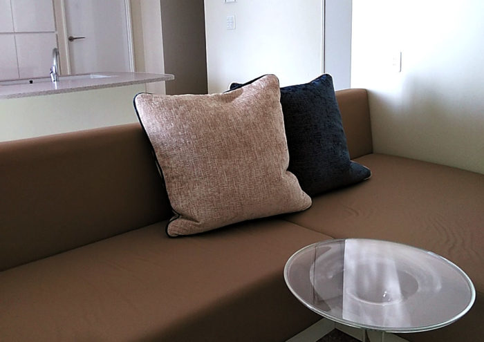 - お持ちのソファーに合わせてオーダーメイドでクッションを製作致しました。