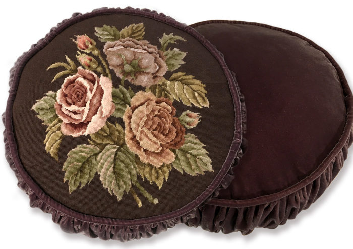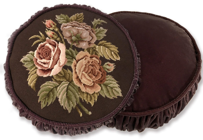 - 生徒さんの刺繍作品をクッションに