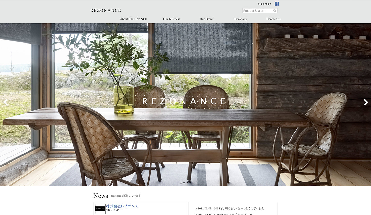 WOODNOTES(ウッドノーツ)を中心に海外の窓周り商品を取り扱う「レゾナンス」のウェブサイトデザイン。