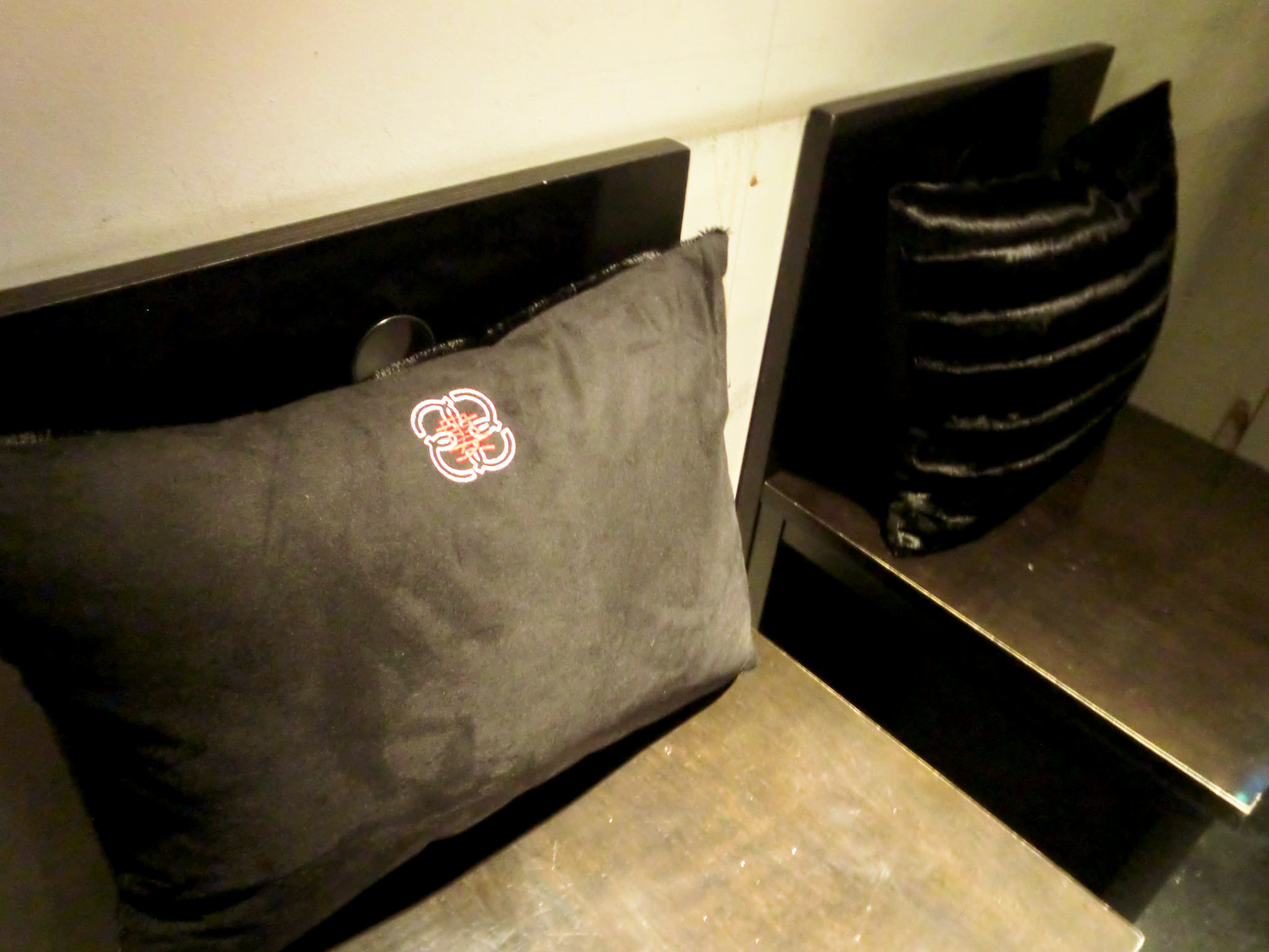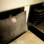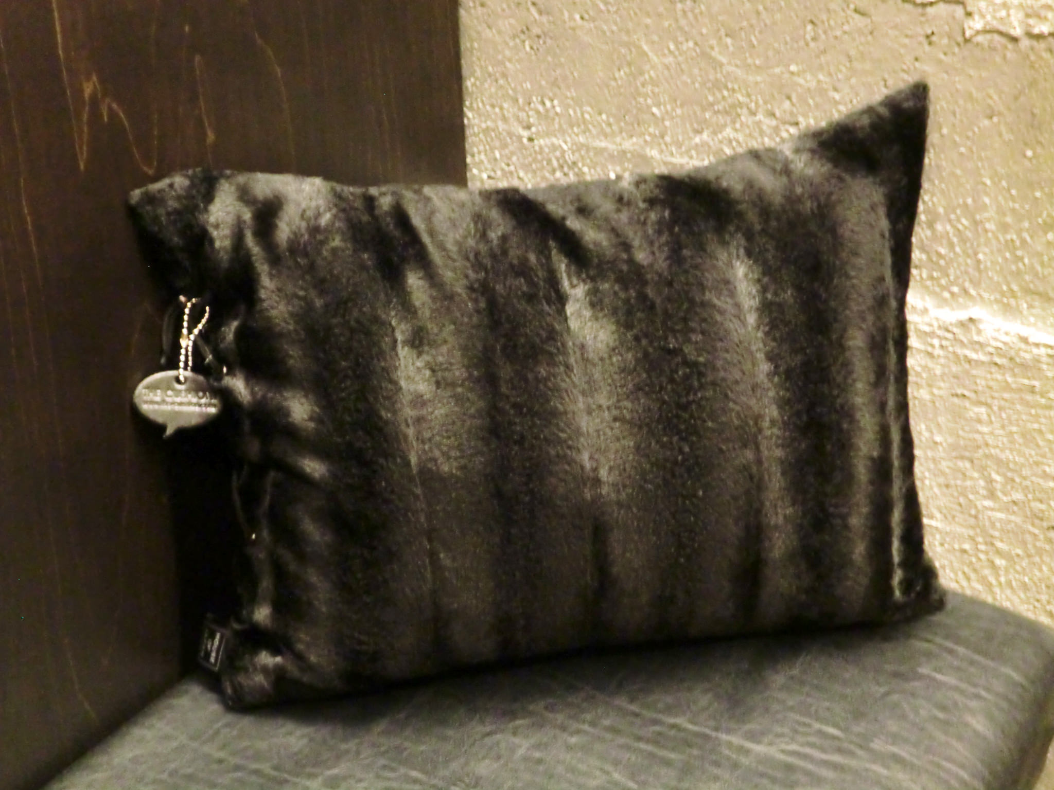抱きかかえても、腰に当てても、丁度良い大きさですし、フカフカで気持ち良いんです!店の内装に合ったデザインで婁熊東京の刺繍が入ってます!