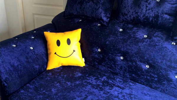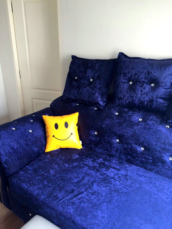 色鮮やかなコバルトブルーのソファーにとてもマッチしていて、すごくお洒落チックなちびスマイルです☆彡