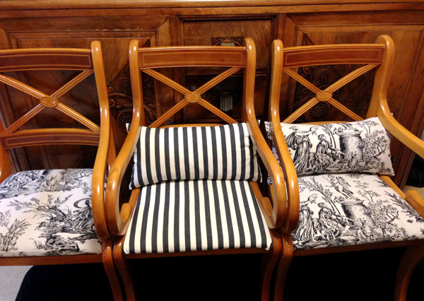 実は、私の家もトワル・ド・ジュイのビンテージ生地を使いDIYしたばかりです♪