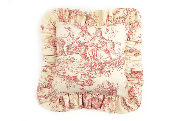 フリルが可愛いトワルドジュイ柄レッドクッション 36×36